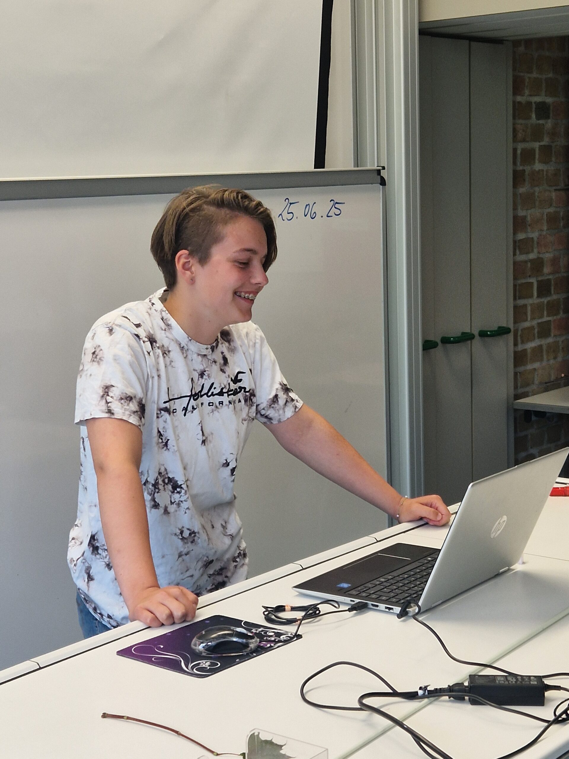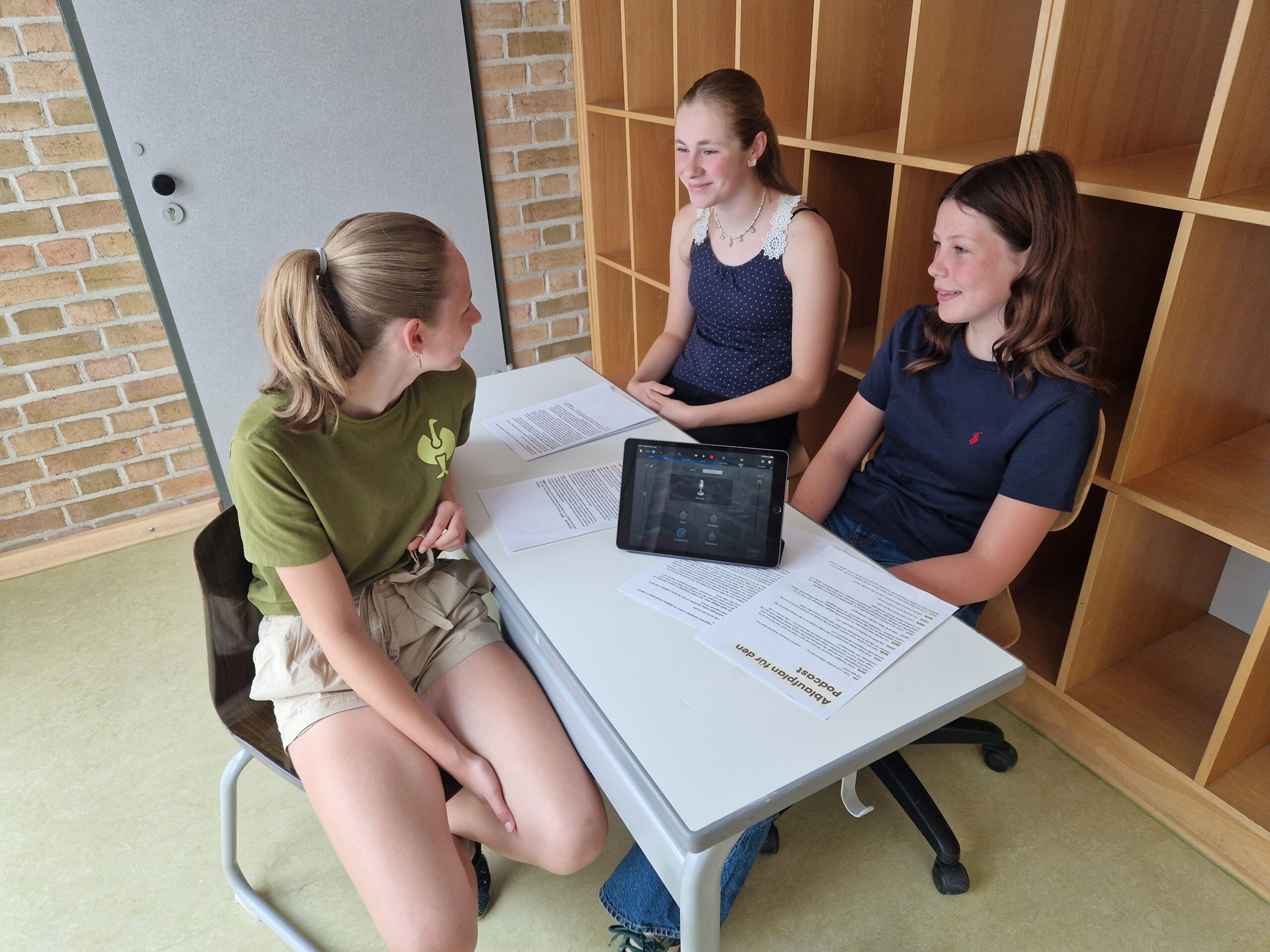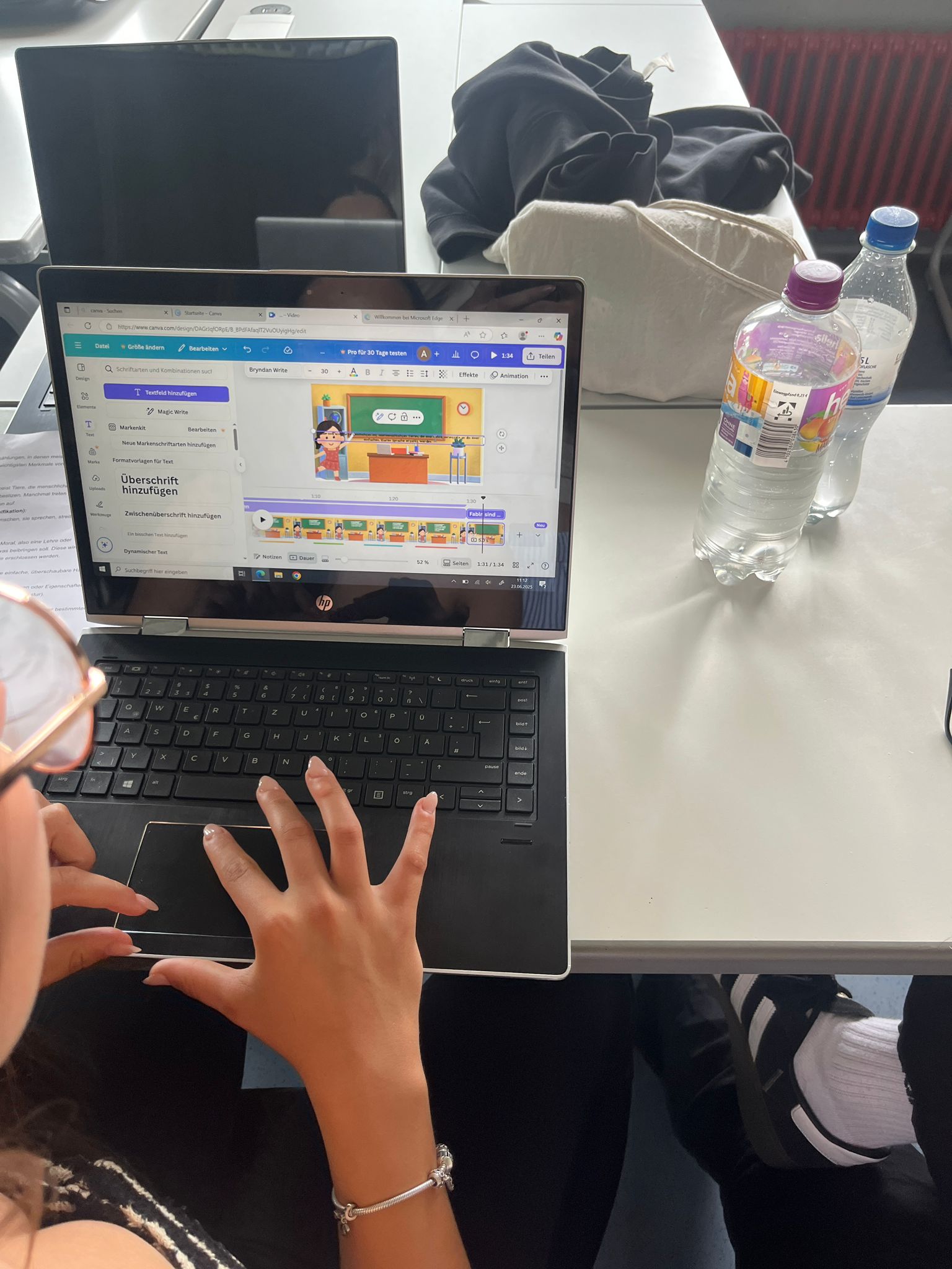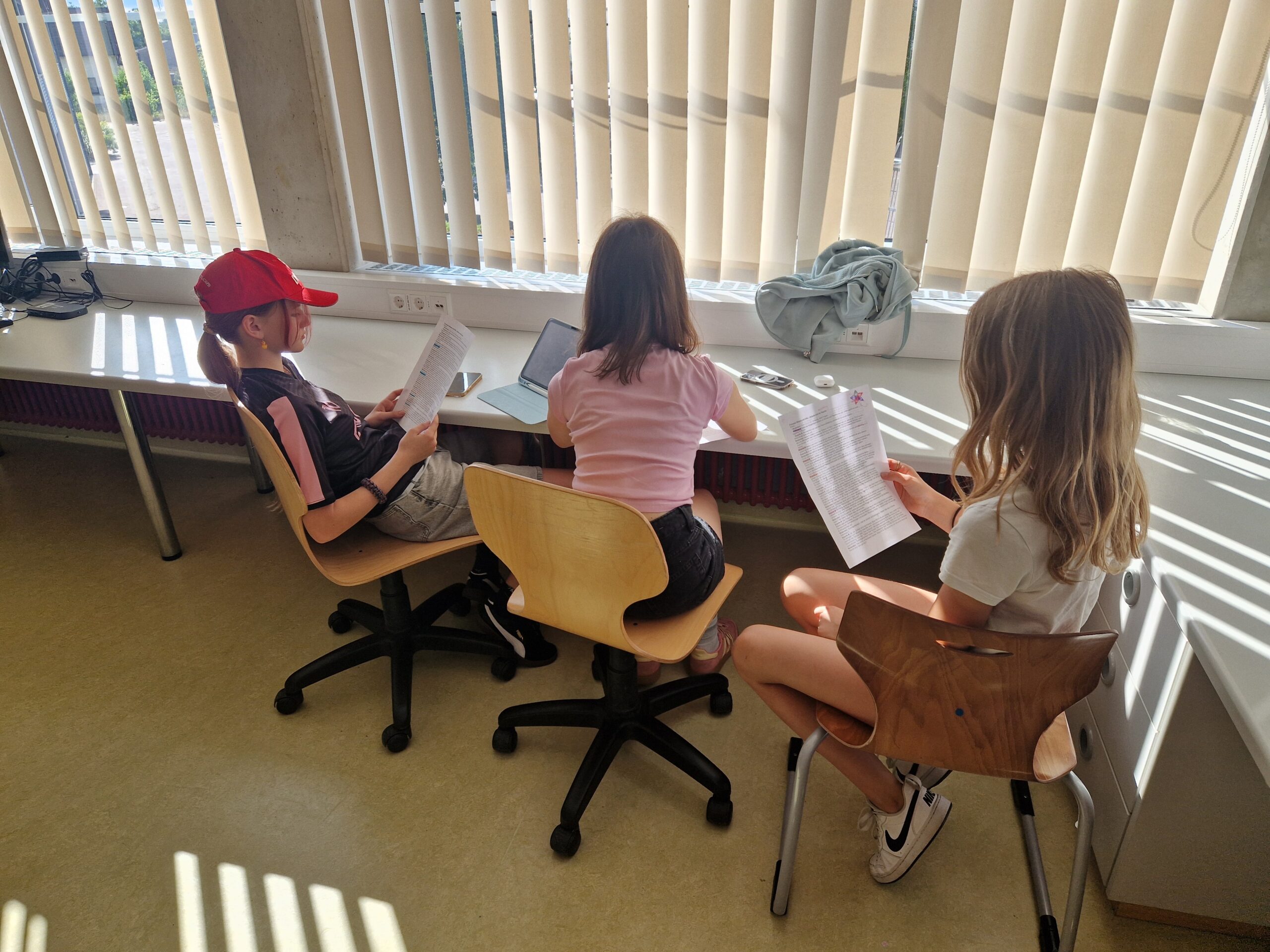 Am zweiten Tag standen die Medienkompetenz und das Arbeiten in der Gruppe im Mittelpunkt: Die Schülerinnen und Schüler produzierten eine eigene Podcast-Folge zu einem selbstgewählten Thema. Dabei lernten sie, wie man recherchiert, Quellen prüft, Fakten zusammenträgt und gefundene Informationen kritisch hinterfragt und verarbeitet, Hintergründe erklärt, Texte verfasst und Diskussionen führt. Auch technische Fertigkeiten wie das Aufnehmen, Schneiden und die Integration von Interviews und Musik wurden geübt. Den Abschluss des Projekts bildete die Präsentation der fertigen Podcasts vor Eltern, Lehrkräften und Mitschülern.