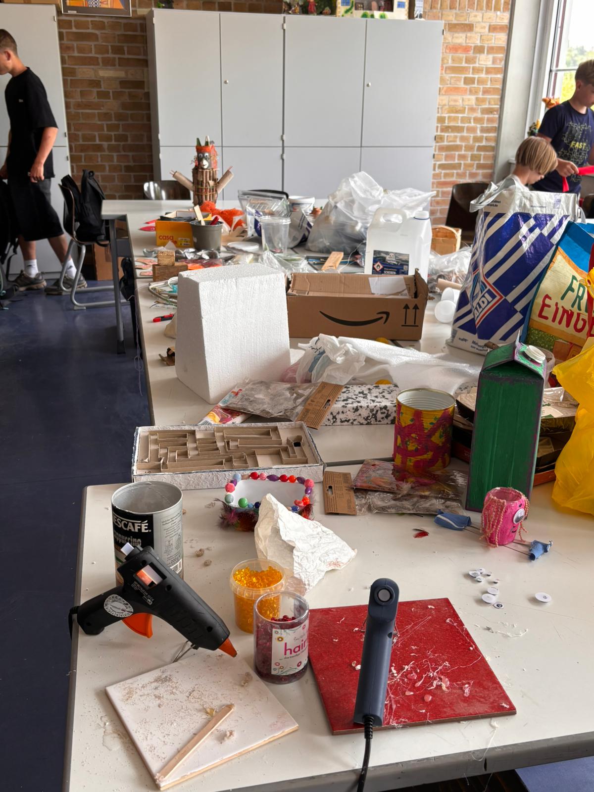 Die sechsten Klassen beschäftigen sich intensiv mit dem Ökosystem Wald. Nach einer spannenden Exkursion wurden Themen wie Waldberufe, Waldbrände und Umweltgefahren kreativ als Kahoot erarbeitet. Als besonderes Highlight erwies sich die Wald-Fühl-Kiste. Weitere Schwerpunkte waren die Themen Nachhaltigkeit und der bewusste Umgang mit natürlichen Ressourcen. In Deutsch und Geschichte wurden ergänzend gesellschaftliche Themen behandelt und kreativ aufgearbeitet. Die Kreativität der Schülerinnen und Schüler zeigte sich besonders im Gestalten von Müllskulpturen: Aus scheinbar nutzlosem Abfall entstanden beeindruckende Kunstwerke, die zum Nachdenken über Konsum und Umweltschutz anregten.