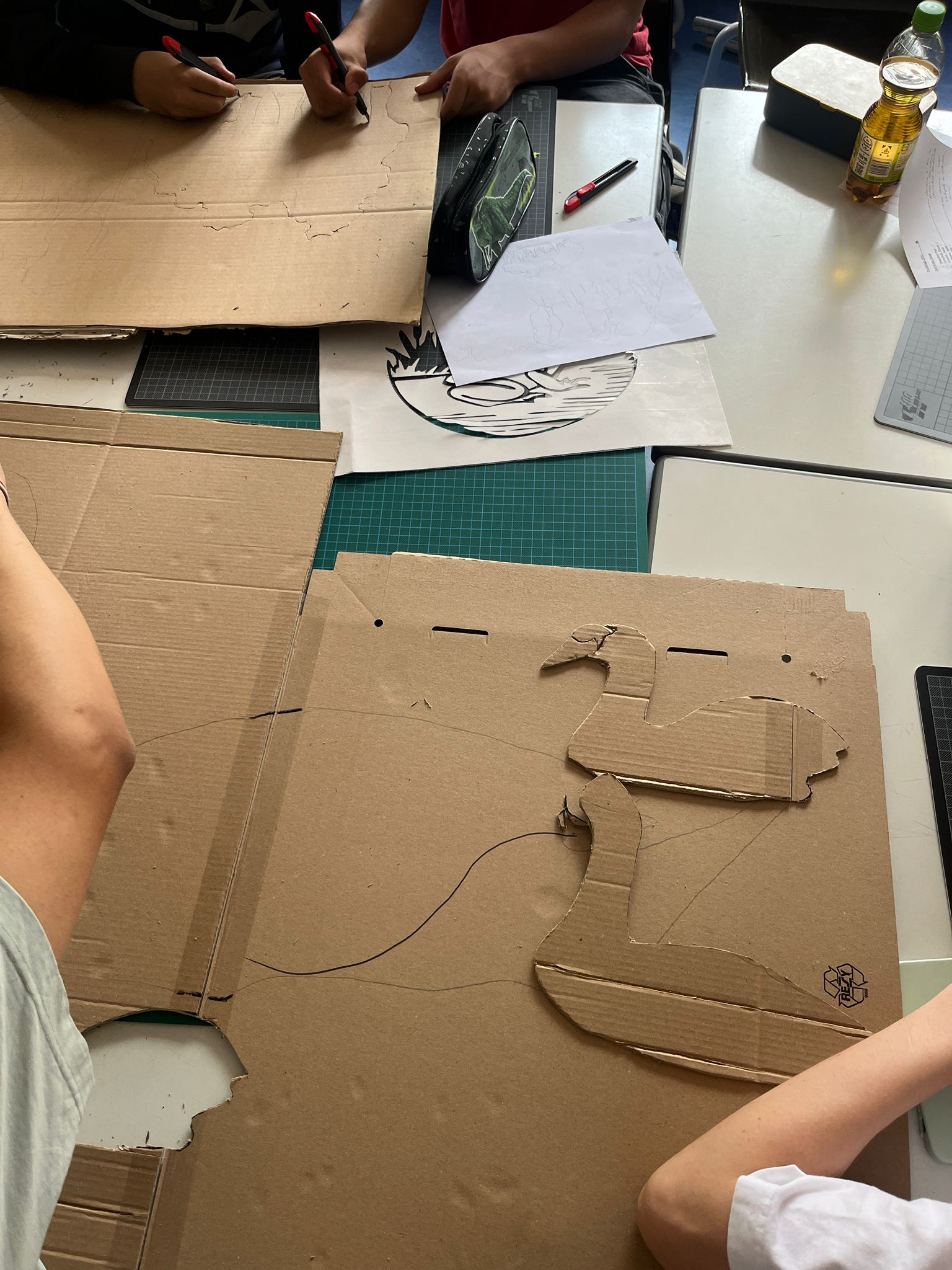 Im Kunstprojekt arbeiteten die Schülerinnen und Schüler mit der Technik der Stencil Art und gestalteten eindrucksvolle Werke. Sie nutzten am letzten Tag diese neu gelernte Technik und fuhren nach Rahnsdorf, um einen Container mit Sprühlack zu designen.
