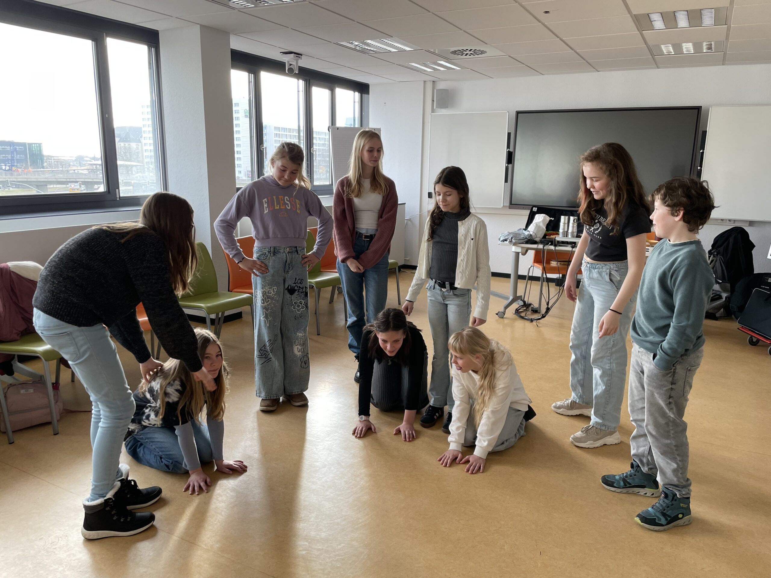 „Chorisches Theater“, in dem wir ausprobierten, wie wir gemeinsam u.a. synchron
