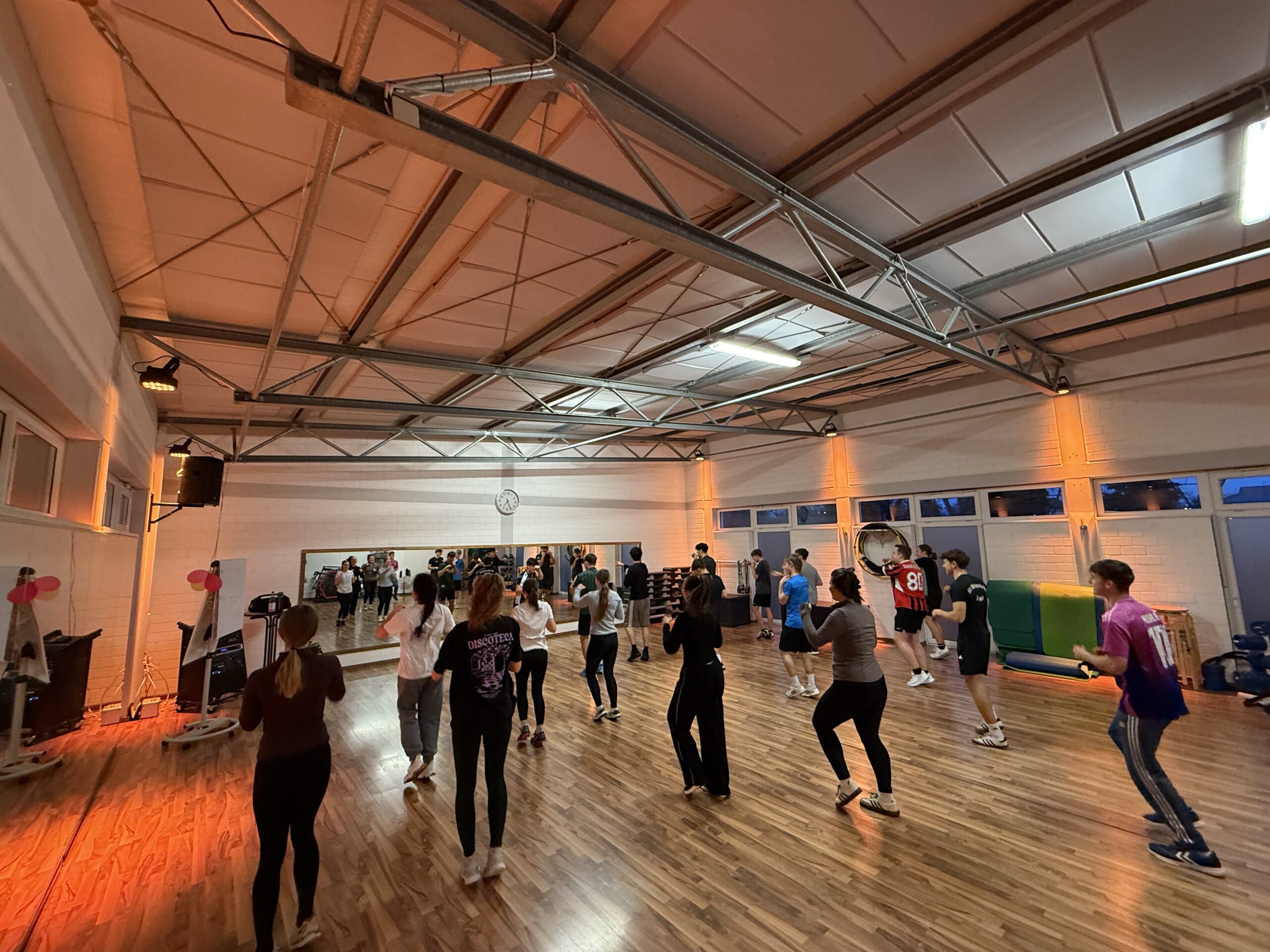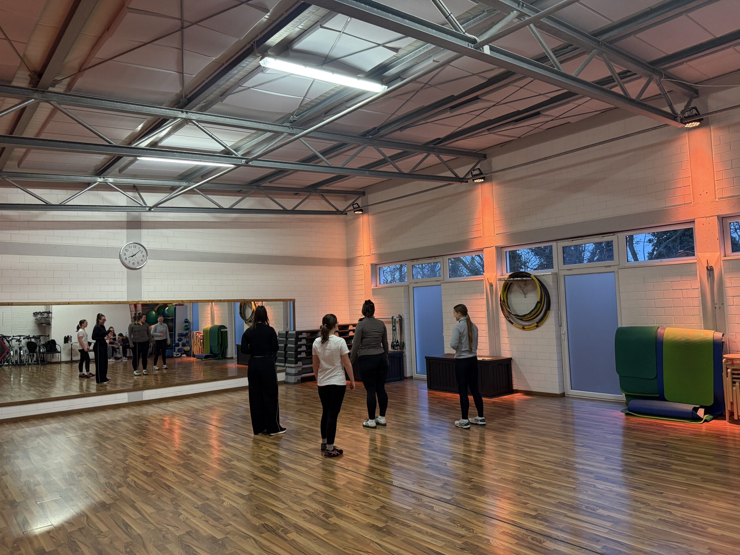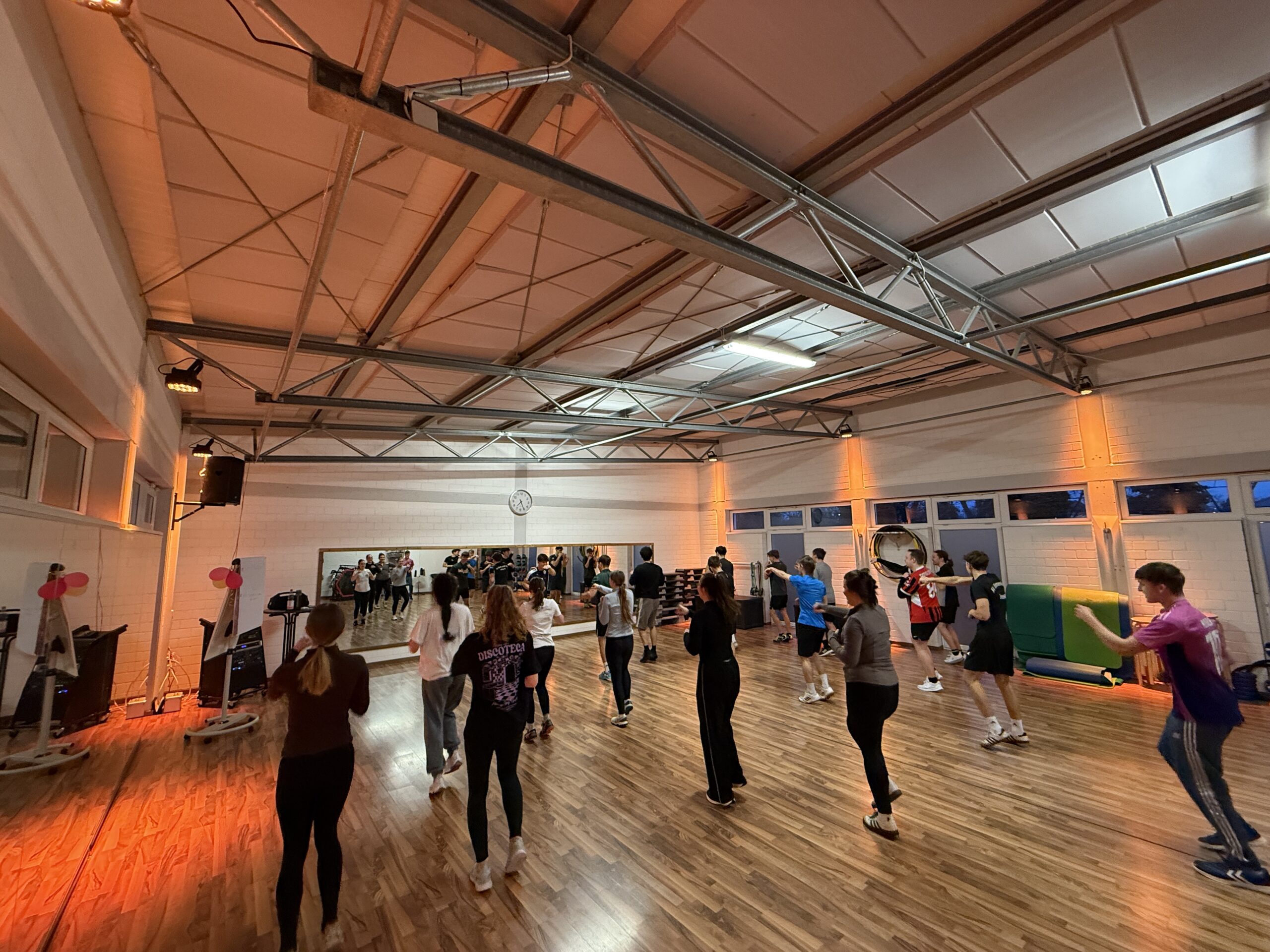 Die Gruppe mit der Wahl Gymnasitk/Tanz übt unterdessen im Kursraum ihre Choreografien. Durch diese Kombination aus eigenständiger Vorbereitung, professioneller Anleitung und abwechslungsreichen Trainingsmethoden erhalten die SchülerInnen einen umfassenden Einblick in die Bereiche Fitness und Gymnastik/Tanz und können ihre persönlichen Kompetenzen gezielt weiterentwickeln.