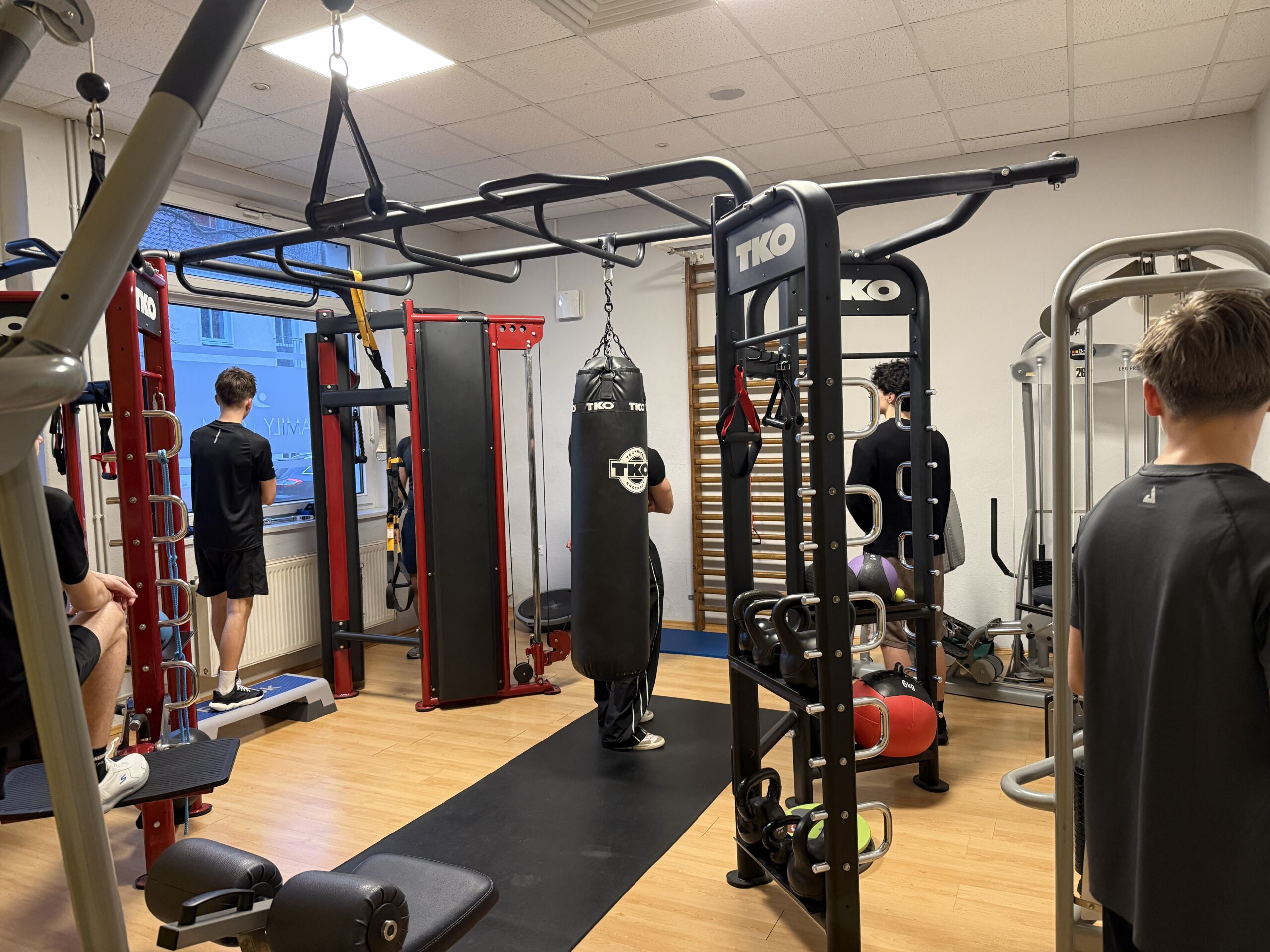 Die Gruppe wird für die Trainingseinheiten geteilt: Ein Teil absolviert unter Anleitung der Trainer des Fitnessstudios einen abwechslungsreichen Fitnesszirkel, während der andere Teil an den Geräten arbeitet und grundlegende Techniken sowie Trainingsprinzipien kennenlernt. In der darauffolgenden Woche wechseln die Gruppen, sodass alle Teilnehmenden beide Trainingsformen erleben und vergleichen können.
