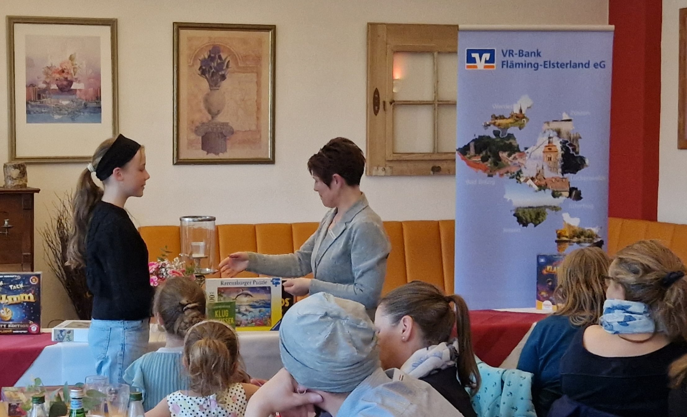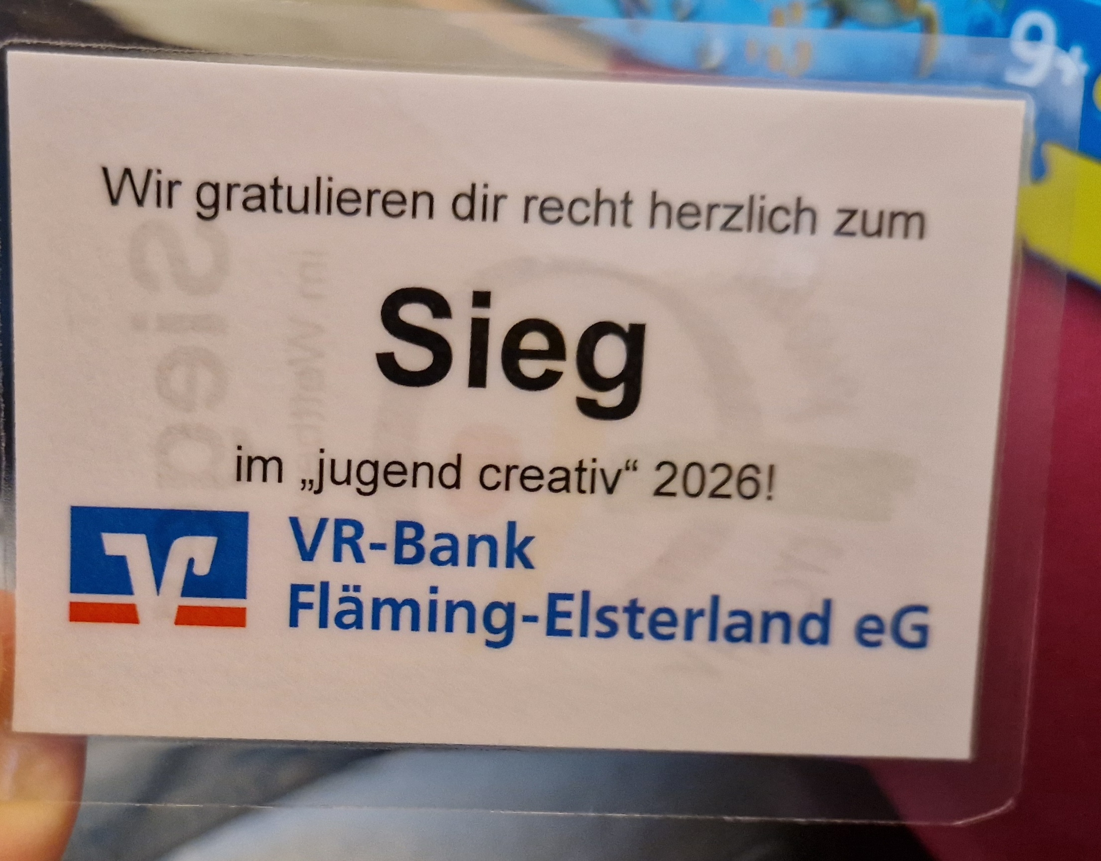 Ein besonderer Höhepunkt war die Auszeichnungsveranstaltung auf Ortsbankenebene der Volksbank in Jüterbog am 14.04.2026, bei der die Preisträgerinnen und Preisträger in einem feierlichen Rahmen geehrt wurden. Dort durfte Laura ihre Urkunde und den Preis entgegennehmen – eine schöne Anerkennung für ihre kreative Arbeit.