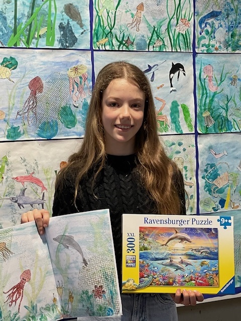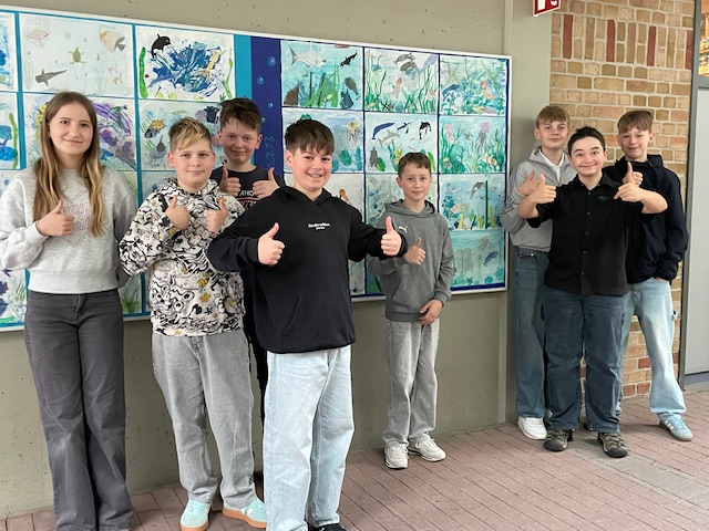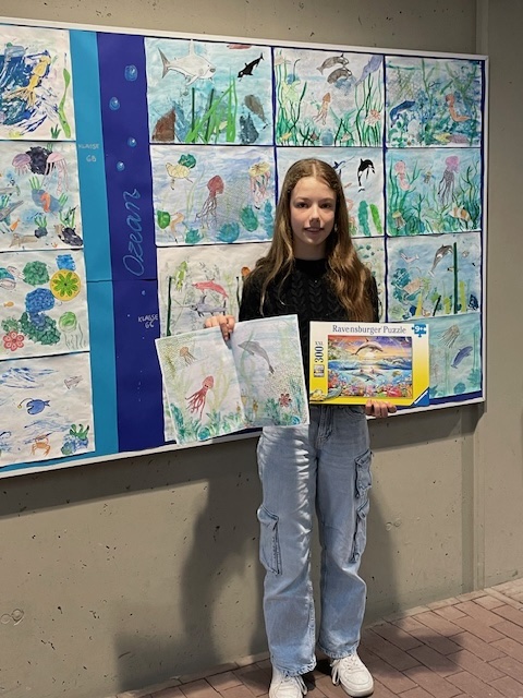 Die intensive inhaltliche und künstlerische Auseinandersetzung mit dem Thema „Ozeane“ im Kunstunterricht der Klassen 6b und 6c zeitigte Erfolge: Unsere Schülerin Laura Gonarski, Klassenstufe 6, erzielte bei diesem bundesweit bekannten Kunstwettbewerb der Volksbanken und Raiffeisenbanken „Jugend creativ“ 2026 einen großartigen 3. Platz auf Regionalebene: der VR-Bank Fläming- Elsterland eG.