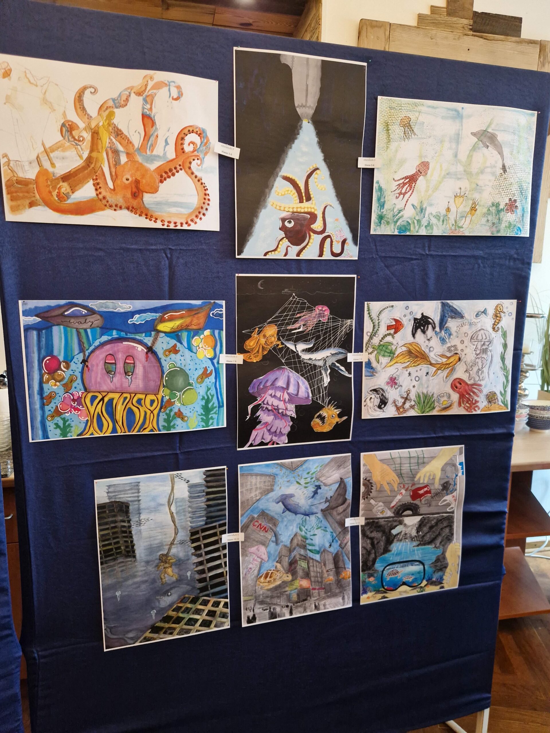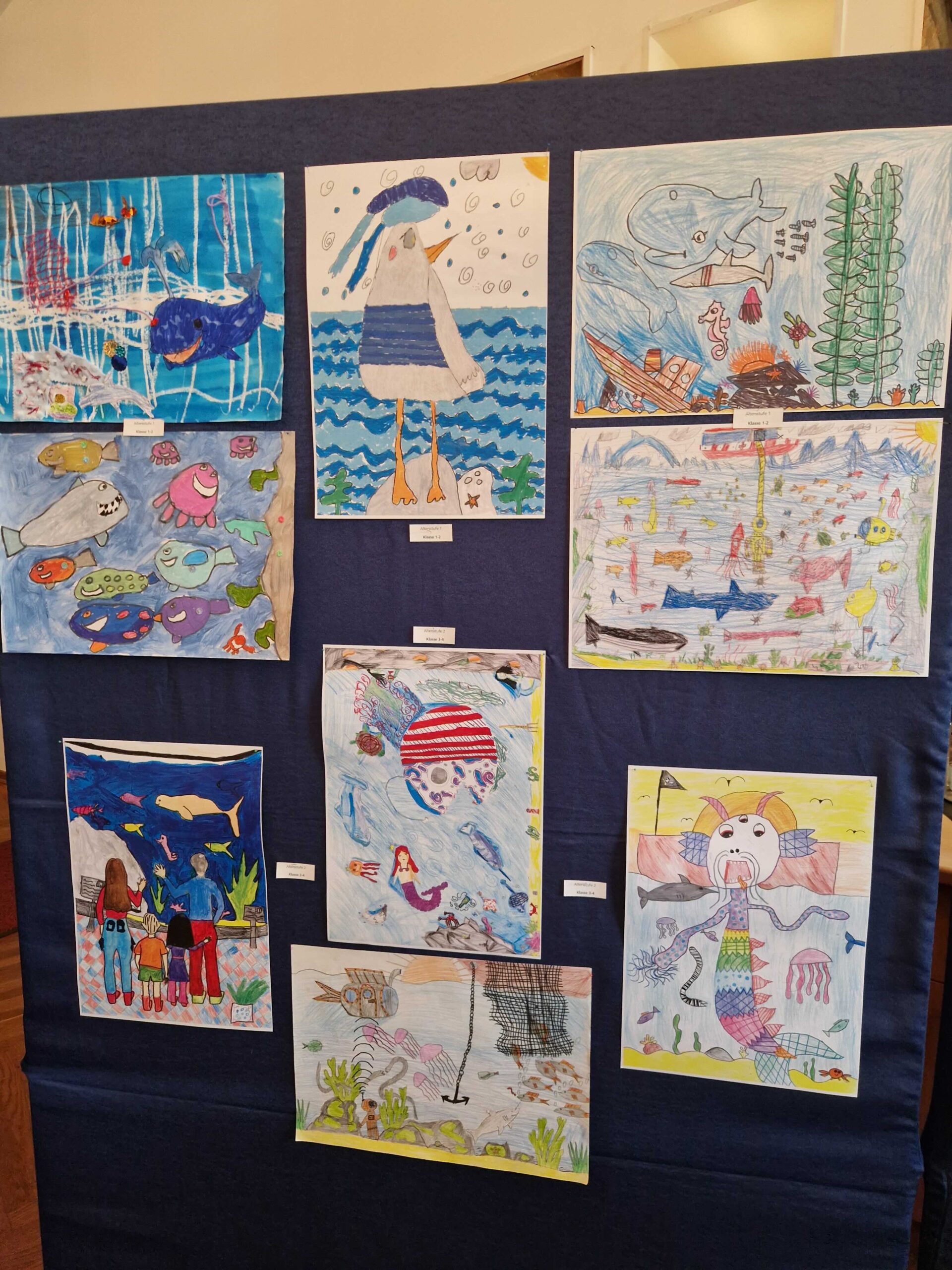 Leider konnten nicht alle zu diesem Thema angefertigten und durchaus gelungenen Bilder prämiert werden. Sie sind jedoch im unteren Flur des 300er Traktes zu besichtigen und zeigen u.a. eine Vielfalt an Meereswesen.